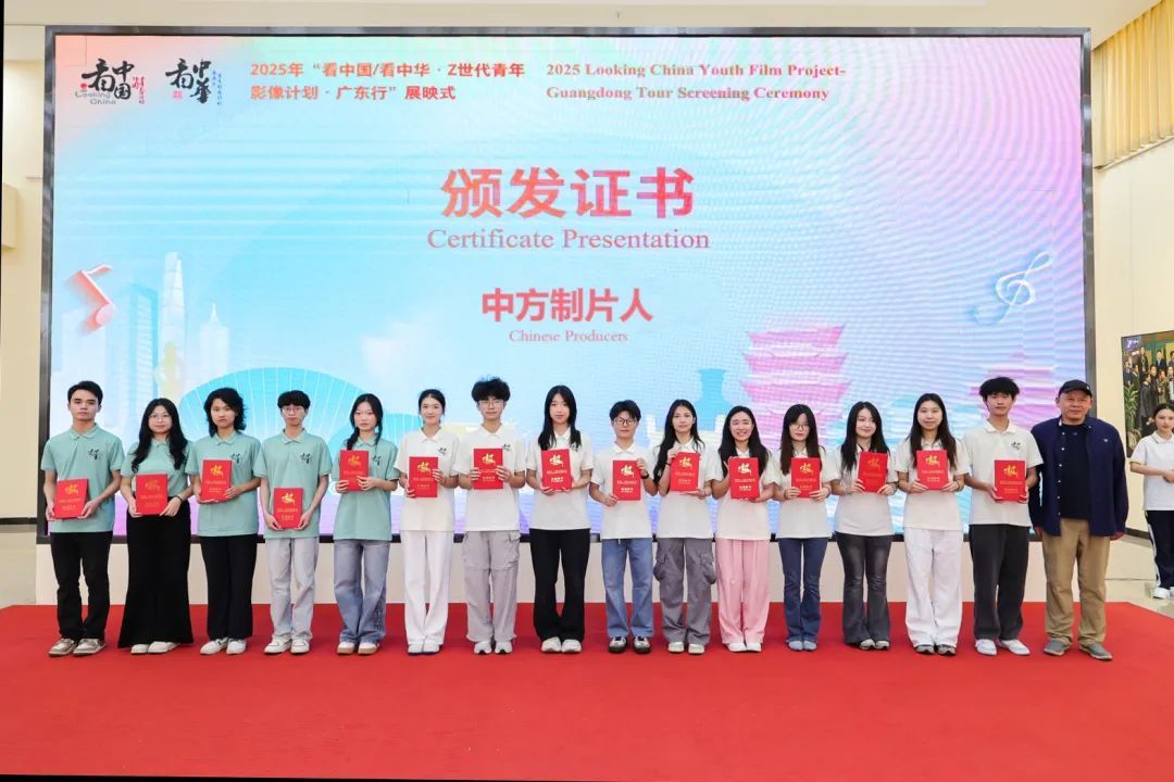 到场嘉宾和项目组成员共同观看了2025年“看中国/看中华·Z世代青年影像计划·广东行”的“第三只眼”纪录片《月影南窗》《南国纽带上的花纹》,一起回顾了15组中外青年在创作过程中的点滴,当画面定格在中外导演欢笑的瞬间,这场以光影为载体的对话,让岭南文化的肌理在跨国创作中焕发新生,续写了文明交流与时代创新的当代篇章。
