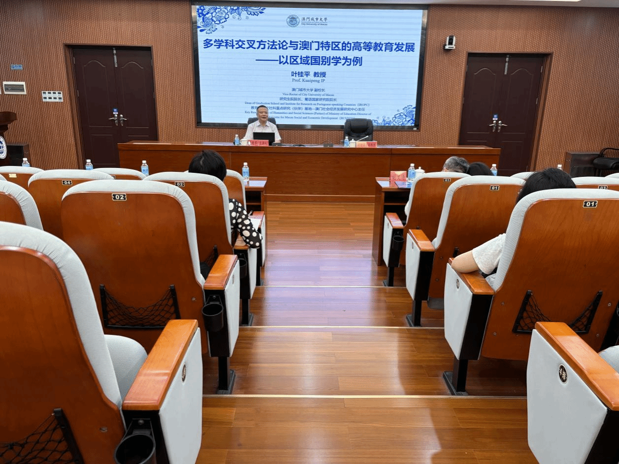 交流期间,叶桂平以“多学科交叉方法论与澳门特区的高等教育发展——以区域国别学为例”为题开展学术讲座。讲座内容立足澳门特区高等教育发展实际,从区域国别学的学科内涵、理论体系、实践路径及建设意义等维度展开系统阐释,梳理了区域国别学的学科概况与核心要素。他结合澳门高等教育发展现状,分享了澳门城市大学在区域国别学领域的实践经验。同时,他充分肯定必赢242net官网区域国别研究的区位优势,建议依托粤港澳大湾区城市资源,深化与澳门高校的学术合作,打造具有肇庆特色的研究品牌。