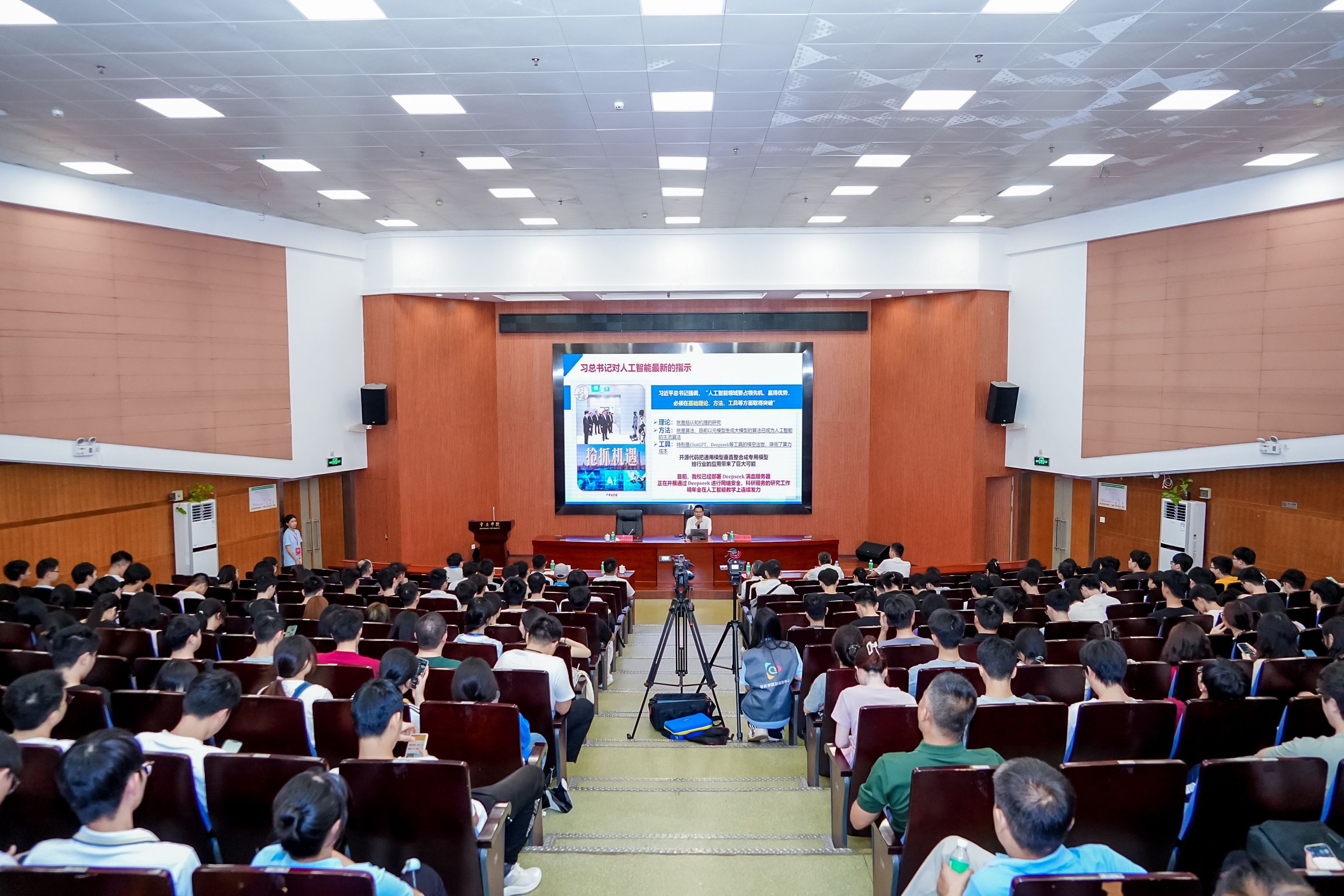 比赛期间也同步组织“攀登大讲堂”,邀请往届特等奖指导老师、广东工业大学副校长鲁仁全教授讲授人工智能前沿知识。