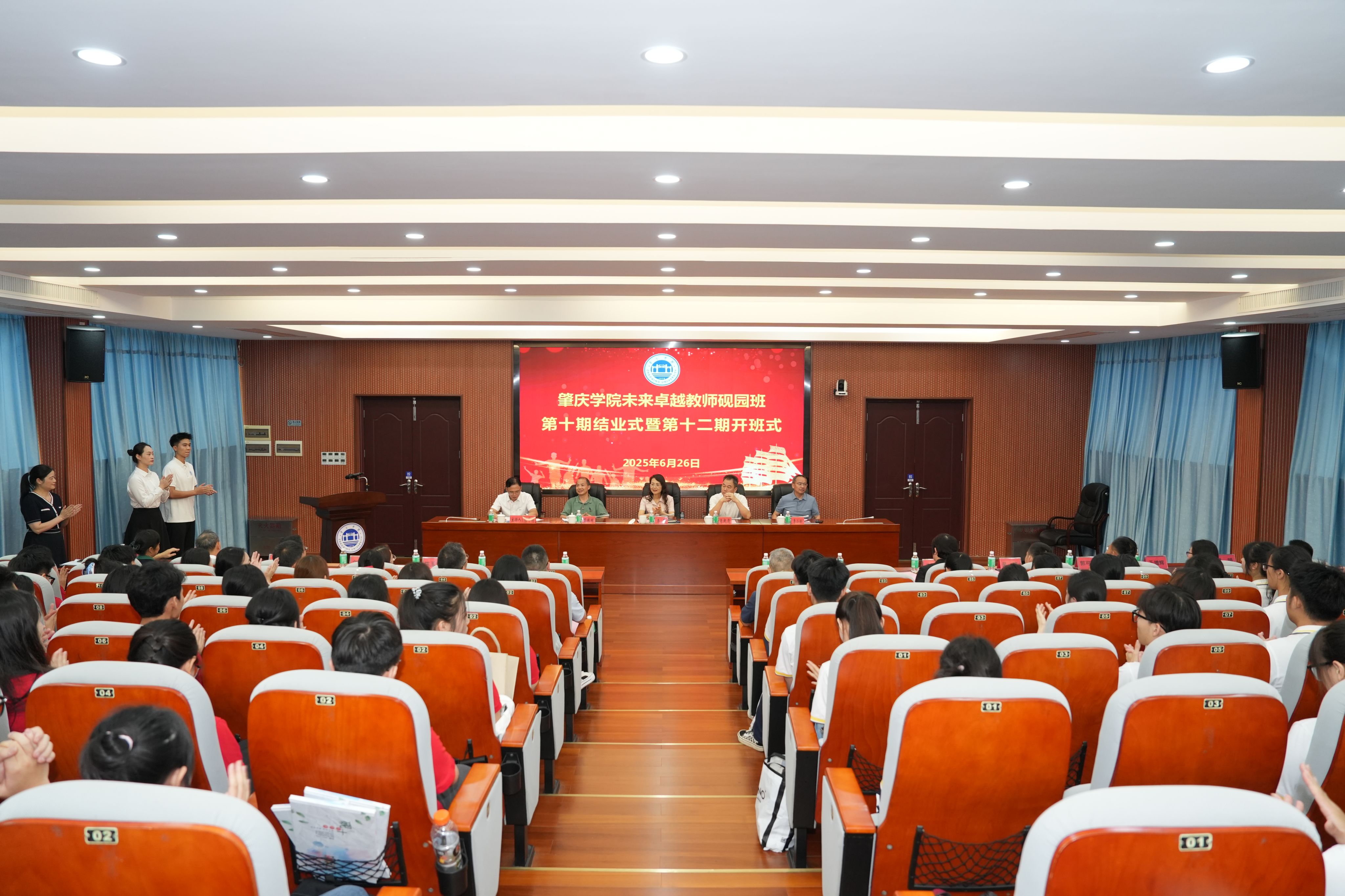 本网讯 6月26日,必赢242net官网未来卓越教师砚园班第十期结业式暨第十二期开班式举行。党委副书记李琴、副校长肖起清、相关职能部门和相关二级学院主要负责人、砚园班导师以及第十期和第十二期砚园班全体师生齐聚一堂,共同见证这一重要时刻。