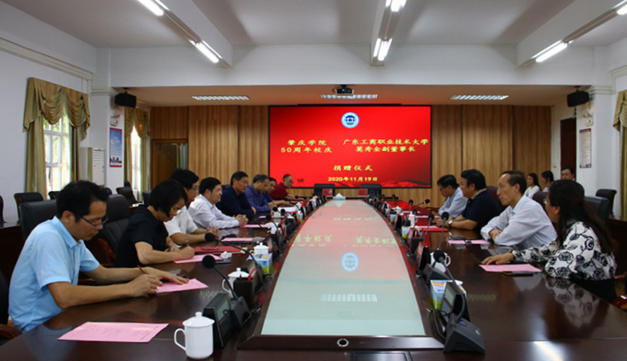 学校党委书记曾桓松、校长吴业春、副校长唐冬冬,党委委员、党办校办主任谭冠中、教育发展基金会理事长沈钦萍,广东工商职业技术大学校长和飞、党委书记叶峥嵘、副校长江雪珍参加捐赠仪式。