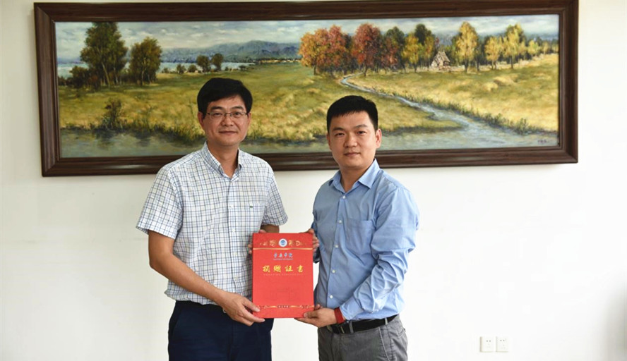 东软集团华南区销售总监乐杰代表集团与学校教育发展基金会签订了捐赠协议书,唐冬冬代表学校接受了捐赠并向乐杰颁发了捐赠证书。据悉,东软集团与我校计算机科学与软件学院、大数据学院为长期合作伙伴,自2013年起设立“9+8周”实习实训平台与未来卓越工程师“东软班”,为我校学子提供了大量的实习和就业岗位。