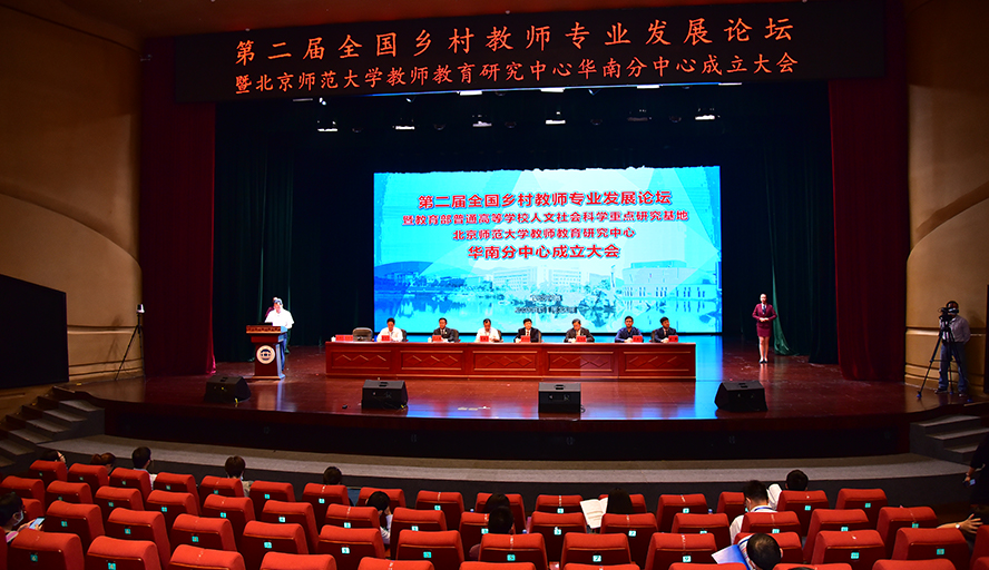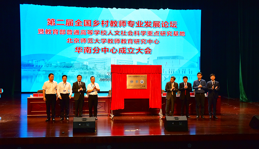 本网讯 11月21日,我校主办第二届全国乡村教师专业发展论坛,在论坛开幕式上,同时举行了教育部普通高校人文社会科学重点研究基地北京师范大学教师教育研究中心华南分中心在我校揭牌仪式。这是首个在华南地区设立的分中心。