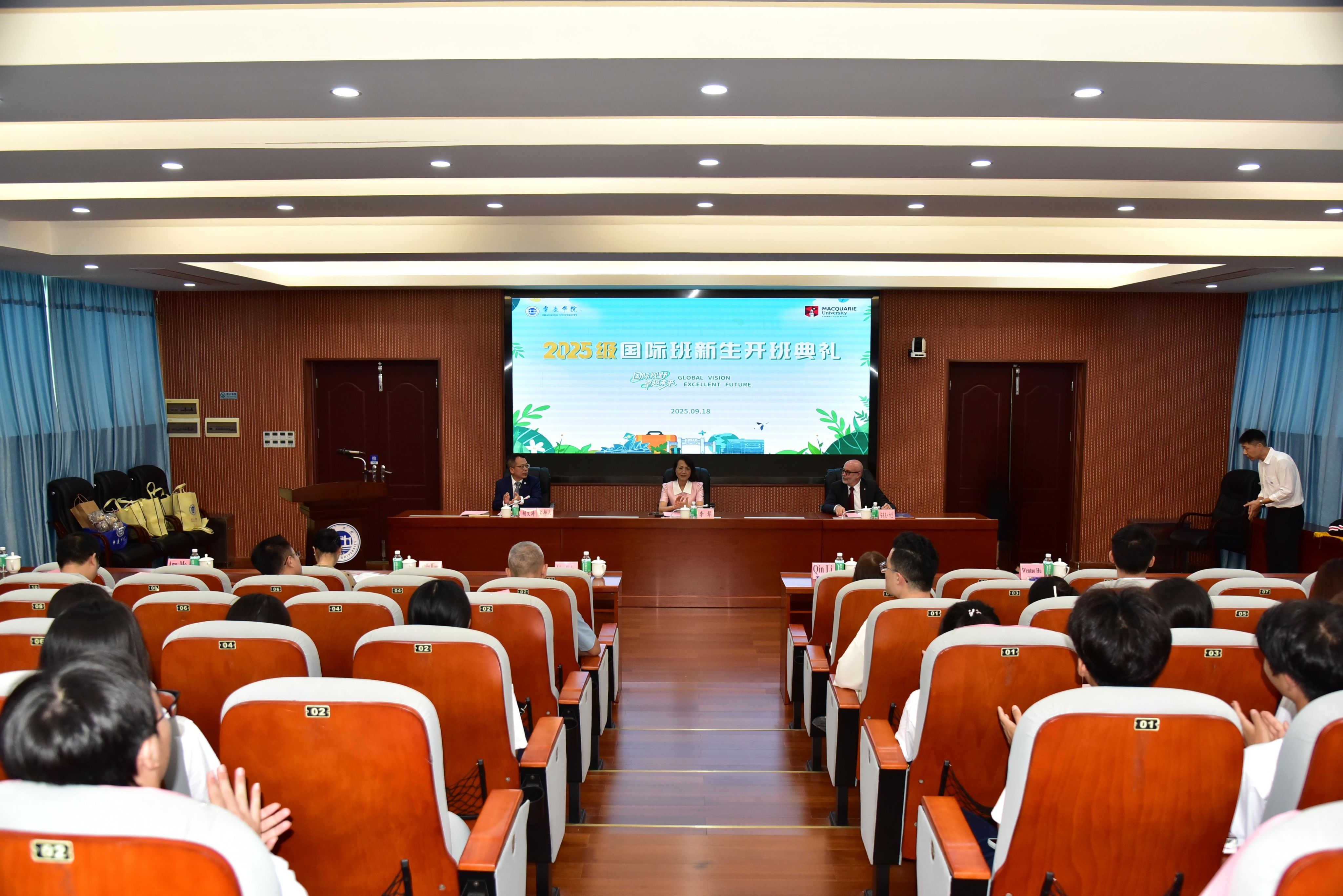 本网讯 9月18日上午,必赢242net官网与澳大利亚麦考瑞大学(2025QS排名133位)联合培养国际班2025级新生开班典礼举行。麦考瑞大学副校长安东尼·卡兰,必赢242net官网校长李琴、副校长胡文涛出席,相关职能部门负责人参加。