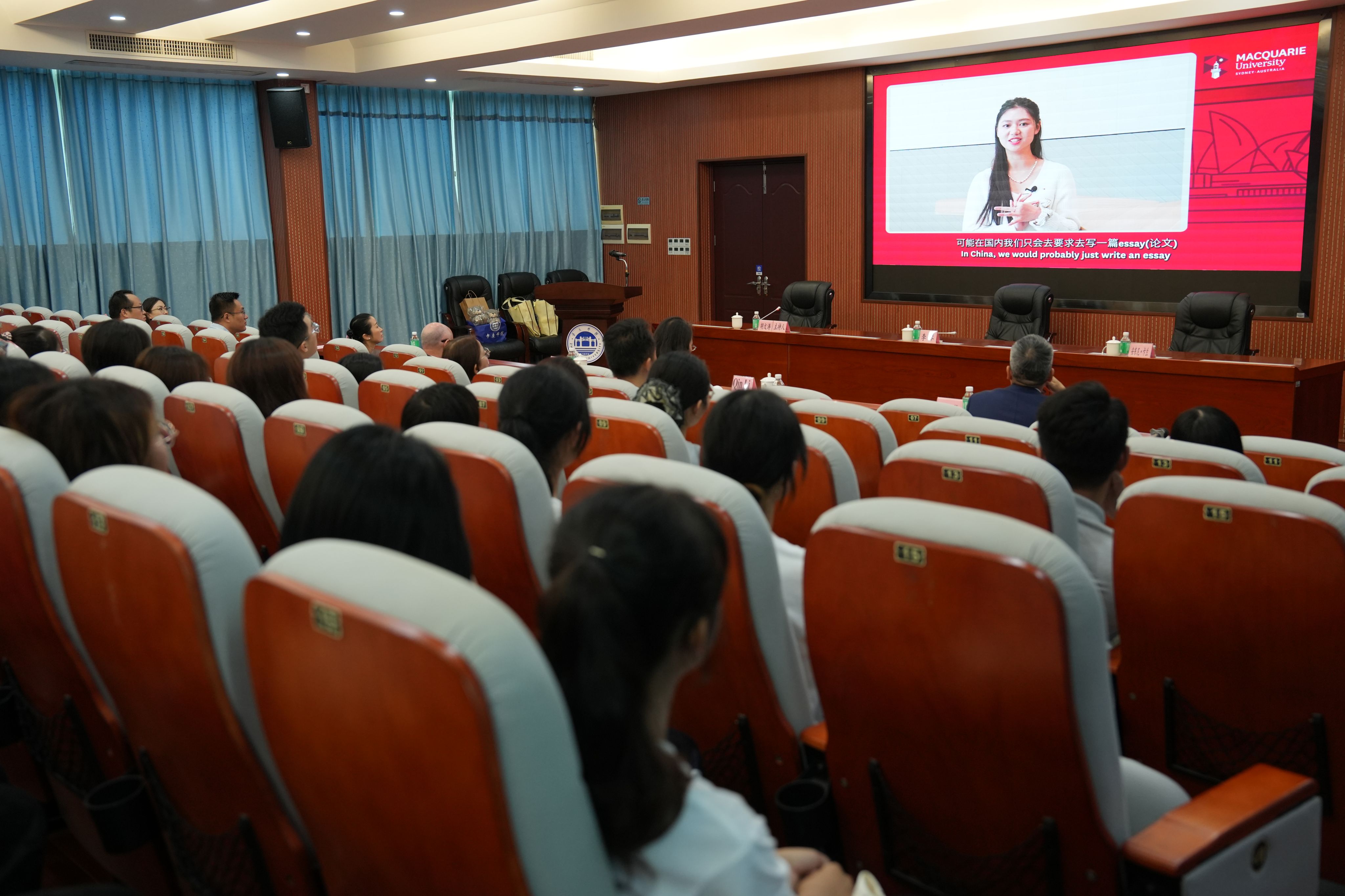 典礼上,李琴向首批55名国际班新生提出“胸怀天下、追求卓越、互学互鉴”的殷切期望;安东尼·卡兰则勉励国际班学子们“保持好奇、跨越边界”,主动拥抱多元文化。新生代表杨子昊用英语发表“勇于挑战、贯通中西”的青春宣言。随后,麦考瑞大学团队先后作《Hello, Australia!》《认识麦考瑞大学》主题分享,围绕学术优势、跨文化适应及海外生活保障等热点详细答疑,为同学们描绘清晰留学蓝图。