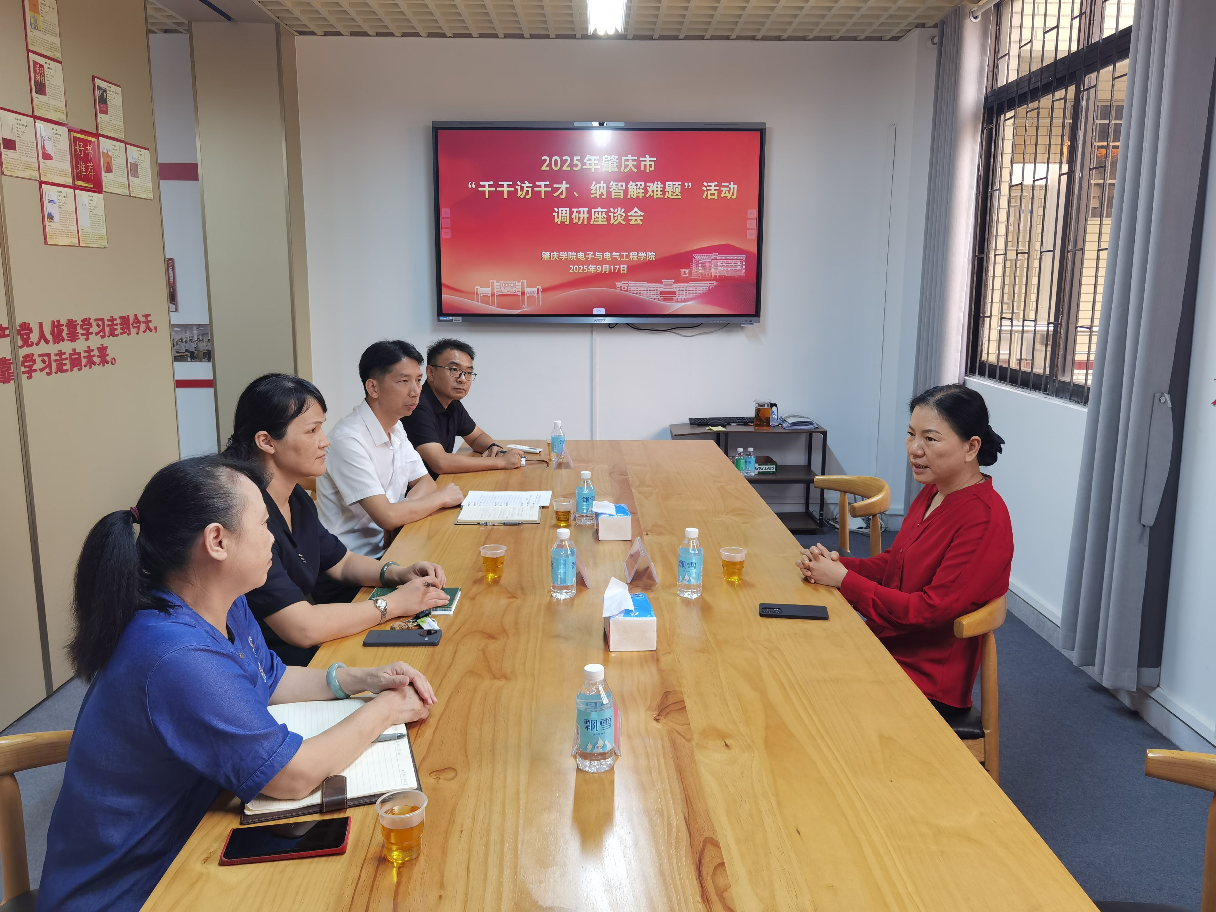 本网讯 9月17日,市政协副主席,九三学社肇庆市委会主委陈宣群到学校走访联系电子与电气工程学院正高级工程师王利萍老师。相关职能部门负责人参加座谈。