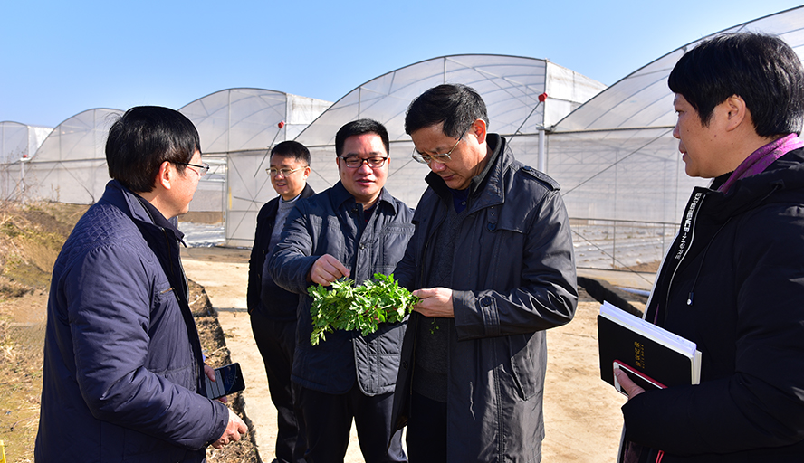 在梁村镇花石村乐天天基地、洊水村蔬菜基地、谭脉西瓜产业园,吴业春听取了各个基地负责人的汇报。在梁村镇政府,吴业春听取了关于全镇乡村振兴工作情况的介绍。