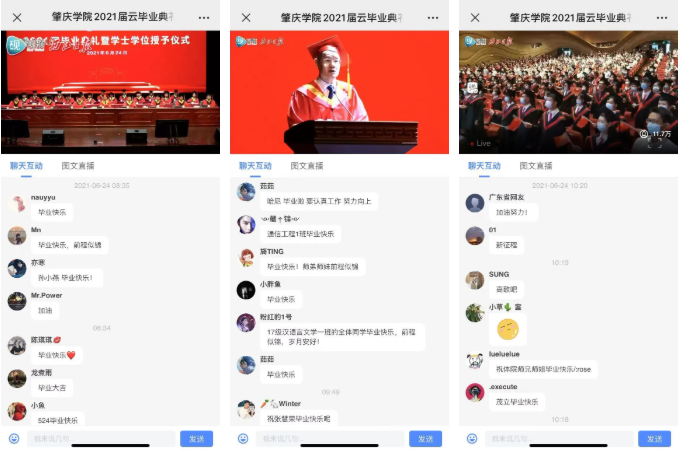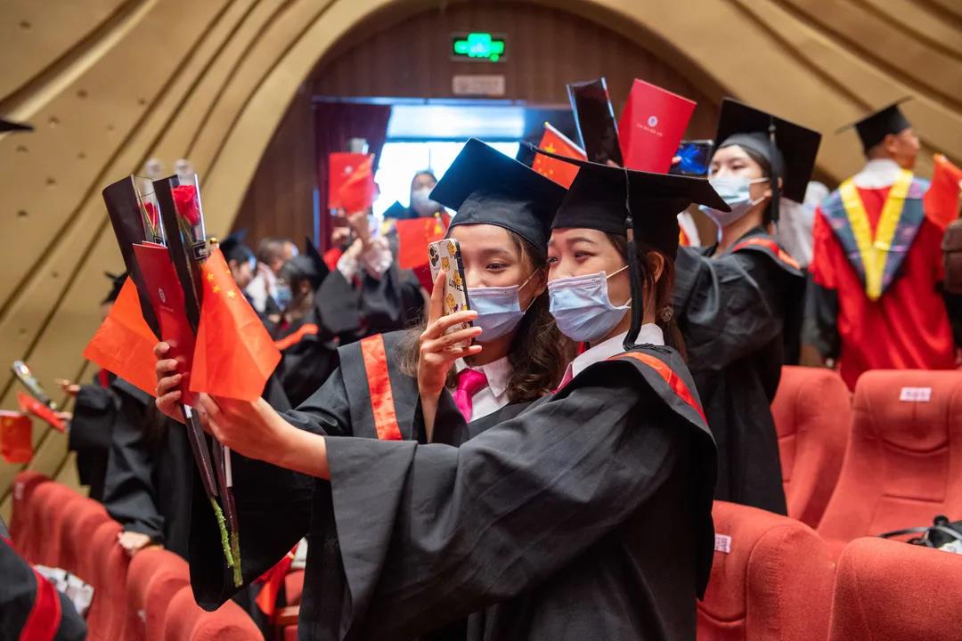 当日,除毕业生代表在现场参加毕业典礼外,另有在校毕业生、学校教师,其他年级学生、家长和社会各界近12万人在云端参与了这场仪式感满满的毕业典礼。