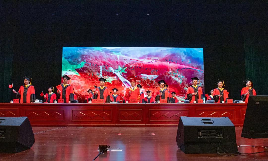 吴业春、黄劲松、谢冠华、肖起清、唐冬冬等校领导,校长助理、校党委委员、学位评定委员会代表、职能部门和二级学院负责人、辅导员、班主任,以及二级学院毕业生代表近500人出席现场典礼。校党委副书记谢冠华主持。