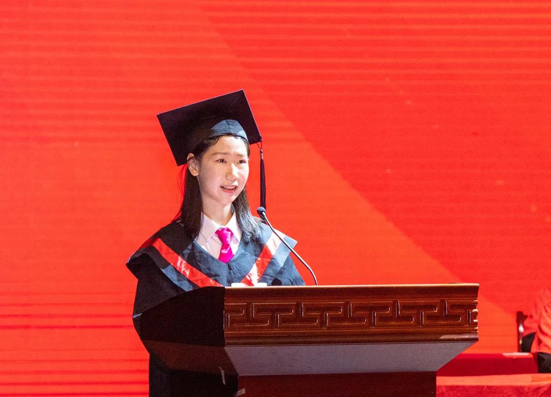 在临别之际,学生代表、教育科学学院17级应用心理学2班的吴敏茹同学向母校表达了深深的感激之情,她说,面对未来,她会保持清醒的头脑,保持乐观的态度,将在砚园习得的追梦与奋进的力量与生命融汇在一起,主动拥抱这个属于追梦人和奋斗者的时代,用不懈的努力创造更大的人生价值。