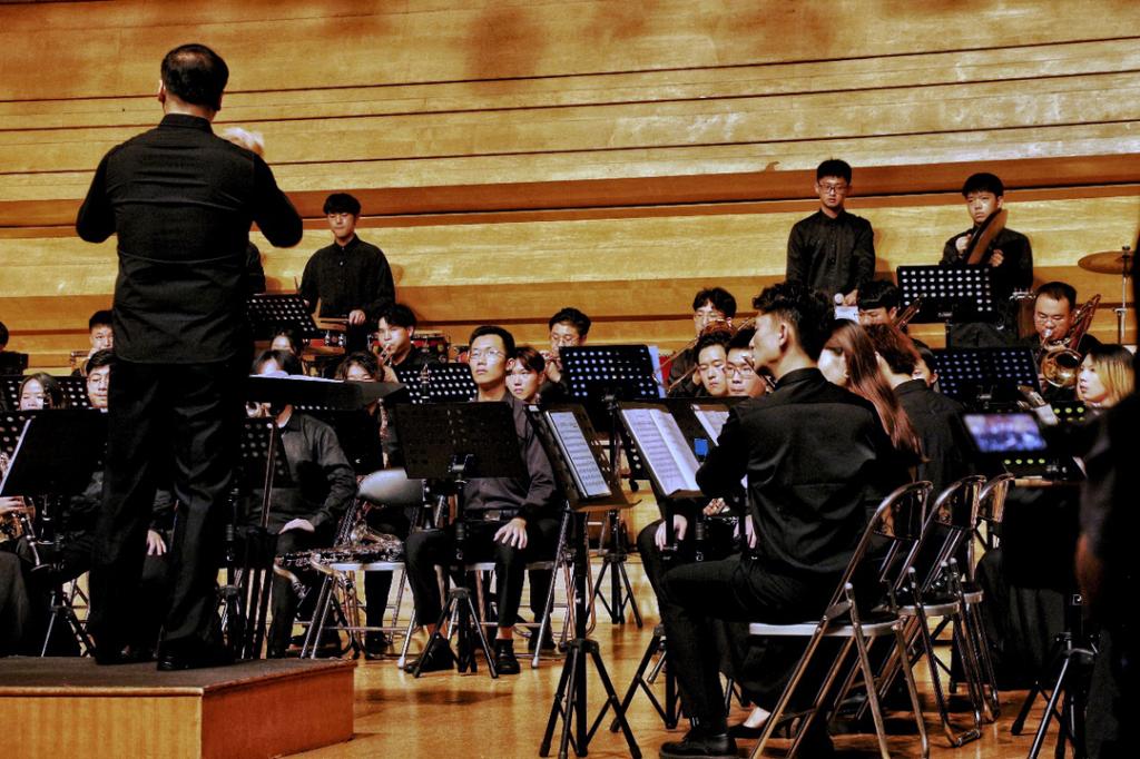 交响管乐团最后出场。跟随着罗霄、王涛两位老师的指挥棒,乐团成员演奏了《无名英雄》《万岁!伟大的祖国!》《钢铁洪流进行曲》以及《歌唱祖国》,将一幅幅画卷用音乐缓缓铺开,向英雄致敬,向祖国献礼。