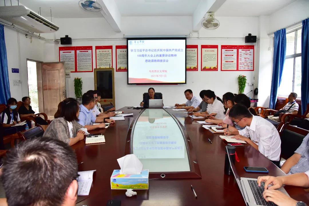 马克思主义学院全体教师开展思政课教师座谈会,就如何学习习近平总书记在庆祝中国共产党成立100周年大会上的重要讲话精神,以及下阶段如何进一步开展党史学习教育和思政课教学进行了研讨。