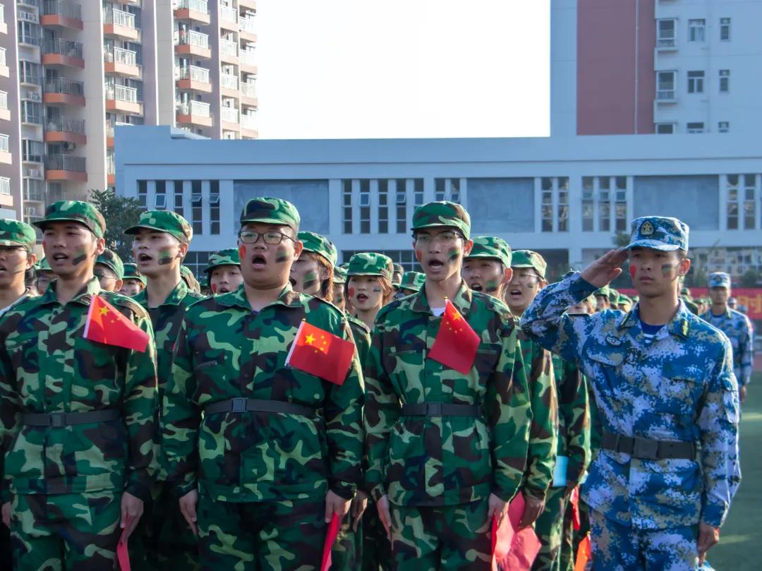 “一二一、一二一”。学员们脸上或涂迷彩油或贴红旗贴纸,他们喊着响亮的口号,以整齐划一的步伐经过主席台,为自己14天的付出送上圆满的答卷