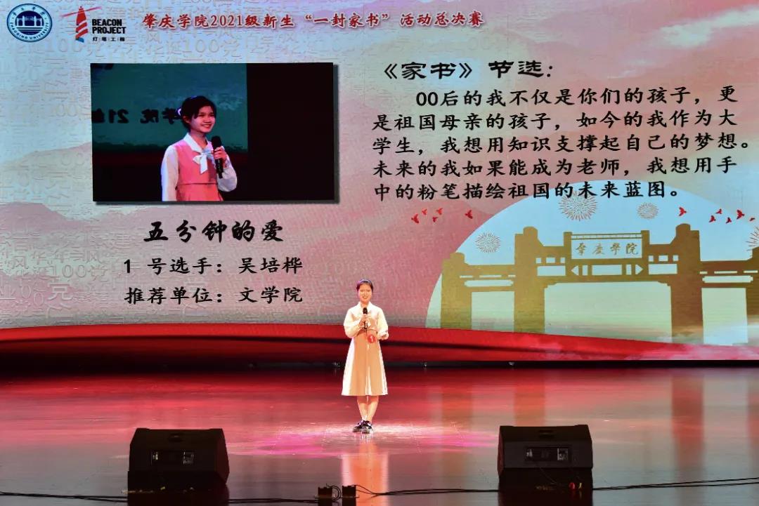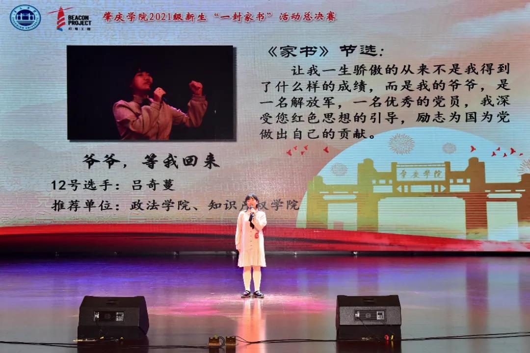 本网讯 言语道不尽思念,文字写不尽故乡,在人情味浓的砚园里,“一封家书”的故事总在不断上演。12月9日晚,我校举办2021级新生“一封家书”活动总决赛。12封家书从2790件参赛作品中脱颖而出,12位作者站在了学校剧场的大舞台上,他们把养育之恩和家国情怀,用诵读的方式向全场观众深情讲述,也让这堂特别的思政课温情满满。