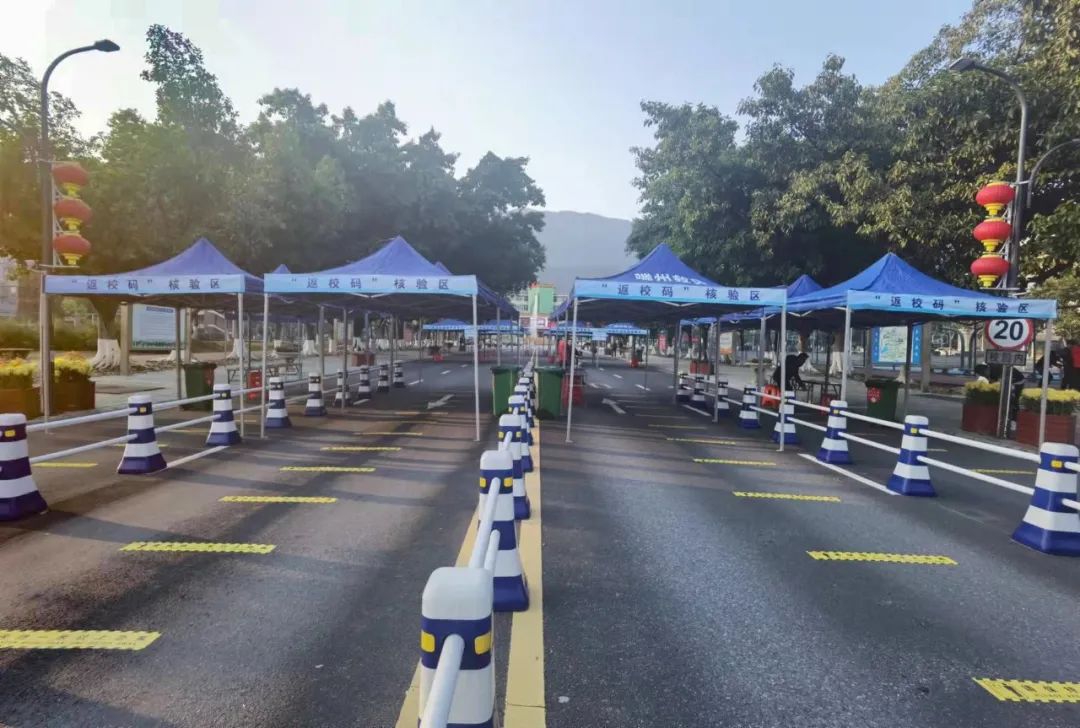 返校前一天,学工处组织各二级学院党委副书记、辅导员,对返校场地进行布置。老师们通力合作,支起帐篷,摆放桌椅,张贴“一米线”,铺好地毯,静静等待着学子返校。