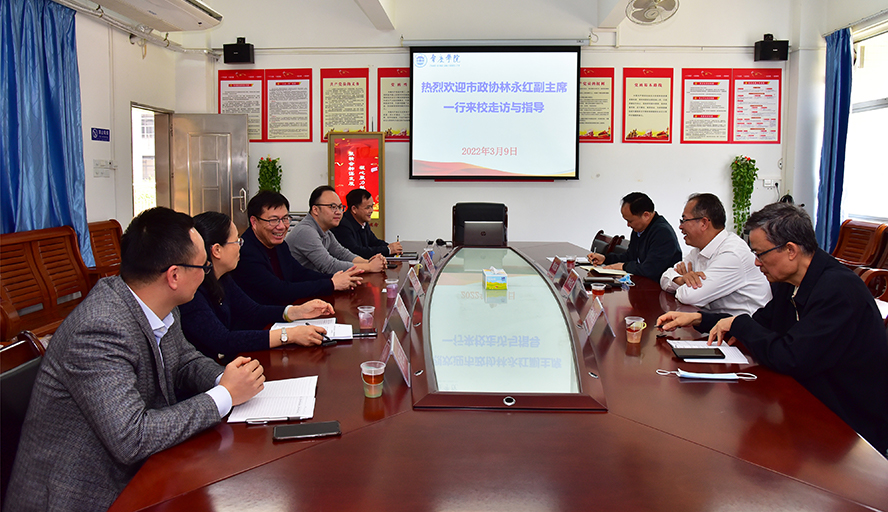 本网讯 3月9日,肇庆市政协副主席林永红一行来校走访看望我校部分新任市政协委员。校党委副书记谢冠华出席,校党委委员、党委宣传部、统战部部长陈前,马克思主义学院院长曹顺霞、副院长曹和修,教师谢石生参加座谈。
