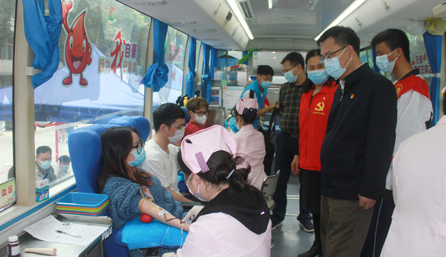 本网讯 3月30日,校党委副书记谢冠华来到无偿献血现场,检查常态化疫情防控期间我校无偿献血工作情况,并对参与无偿献血的学生表示慰问。肇庆市中心血站站长梁洁贞、副站长廖扬勋,学工处处长陈向荣、副处长罗永全陪同检查。