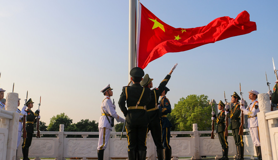 升旗仪式结束后,同学们纷纷来到国旗下,与国旗合影。来自外国语学院的杨欣怡同学激动地说:“望着鲜艳的五星红旗冉冉升起,我心中非常激动。今天是五四青年节,作为新时代的青年,我们将为中华民族伟大复兴奋力拼搏。”