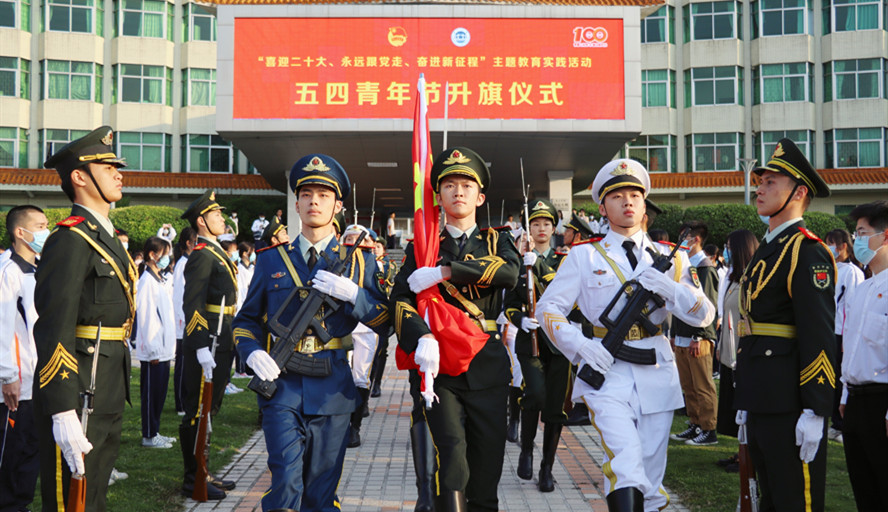 本网讯 5月4日,必赢242net官网“喜迎二十大、永远跟党走、奋进新征程”主题教育实践活动——五四青年节升旗仪式在国砚广场举行。各级团干、青年代表300余人一起参加升旗仪式,欢度第103个“五四”青年节,弘扬爱国精神,赓续红色血脉,展示砚园青年听党话、跟党走,为学校建设发展汇聚青春力量的壮志豪情。