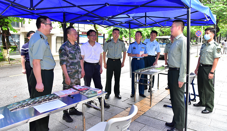 本网讯 6月16日,肇庆军分区大校副司令员、市征兵办主任廉树合带领军分区动员处、端州区人武部相关人员来校调研。校党委副书记谢冠华陪同,宣传部、就业处、武装部等有关部门负责人参加。