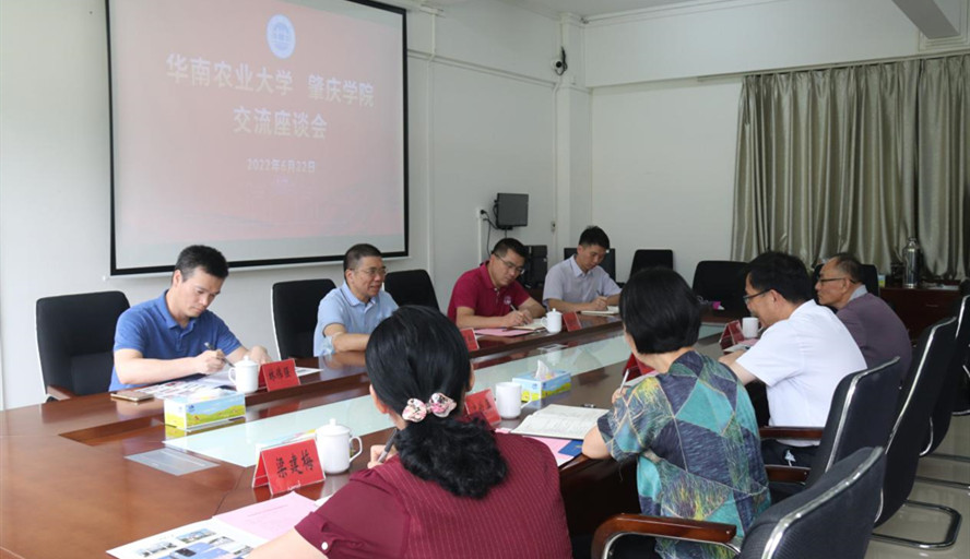 谢冠华向来访客人介绍我校的办学状况。他表示,目前我校办学体制已由省市共建调整为省属高校,这对学校理顺机构编制,稳定财政保障,更好地服务地方乃至全省的经济社会发展都具有重大意义。目前,我校以“做优新师范、做强新工科、提升新文科、发展新农科”为建设思路,在新工科、新农科的学科建设工作方面还存在不少短板,希望与华南农业大学进行更多的交流与合作,提升办学质量,共促两校发展。