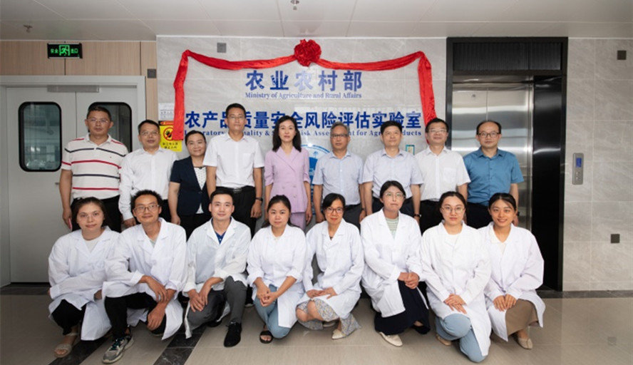 与会领导嘉宾为风险评估实验室揭牌并与实验室研究人员合影