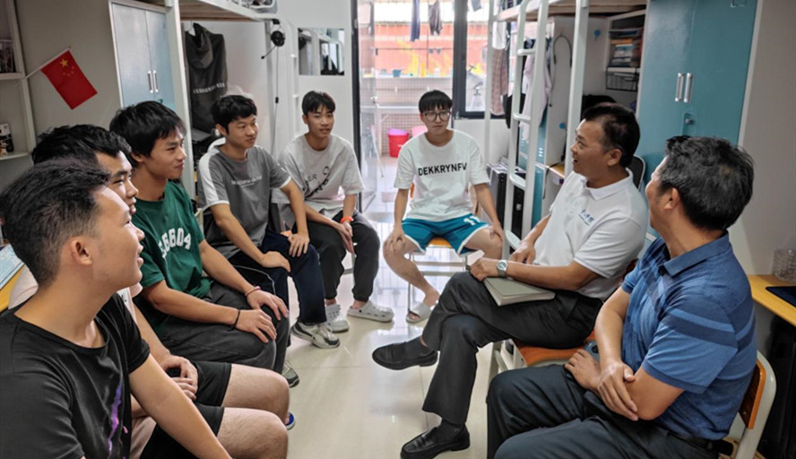 本网讯 10月17日,广工帮扶队队长刘怡军深入基层,走访联系计算机学院21级物联网1班学生宿舍,计算机学院党委副书记陈彦雄及辅导员邹卫老师陪同。