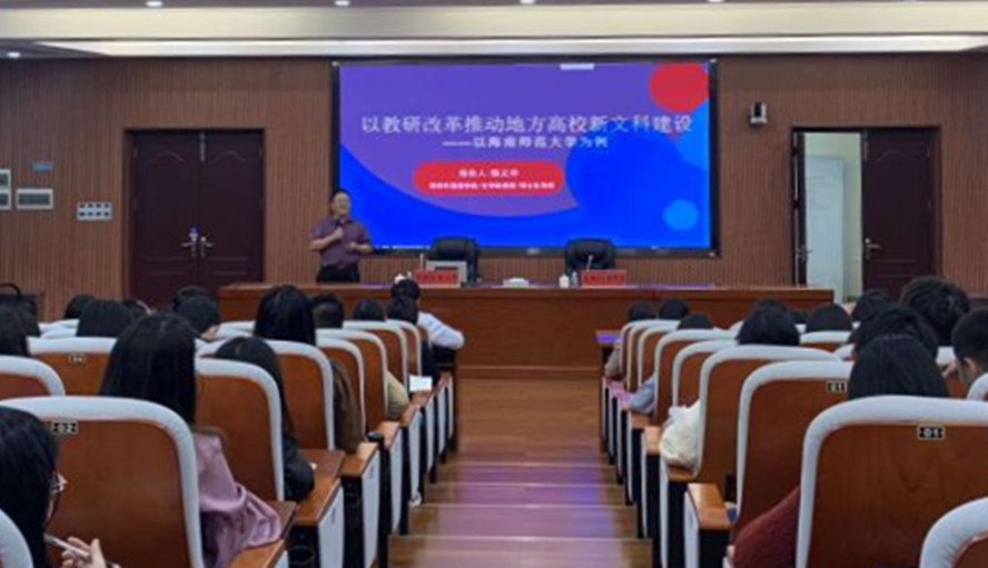 本网讯 3月14日,海南师范大学外国语学院院长、博士生导师陈义华教授应邀到访外国语学院,开展题为《以教研改革推动地方高校新文科建设》的专题讲座。外国语学院党委书记吕伟荣主持。