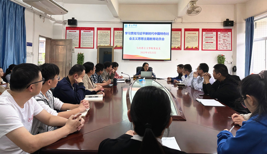 本网讯 4月25日,马克思主义学院召开学习贯彻习近平新时代中国特色社会主义思想主题教育动员会,对学院开展主题教育进行安排部署。学院党总支书记、院长曹顺霞主持,学院全体教师出席。