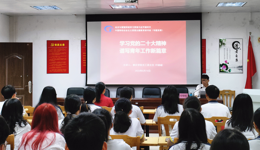 本网讯 5月10日,经济与管理学院组织开展主题教育读书班专题党课,邀请关工委主任、原校党委副书记叶峥嵘以《学习党的二十大精神 谱写青年工作新篇章》为题,为学院50余名青年大学生作宣讲。