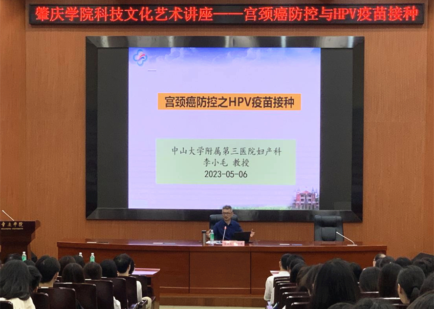 本网讯 5月6日,食品与制药工程学院特邀中山大学李小毛教授在图书馆学术报告厅举办题为“宫颈癌防控与HPV疫苗接种”的学术讲座。汪洪武院长主持,近300名师生参加。