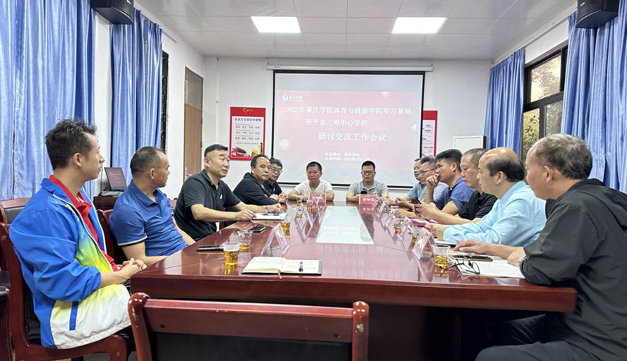 本网讯 为贯彻落实学校第十次教学工作会议精神,5月12日,体育与健康学院院长杨海平会见来访的开平市三埠中心学校校长张朝柏一行,双方就体育专业人才培养、体育教师培训等多项内容展开座谈。副院长刘汉坤与各专业系主任参加会议。