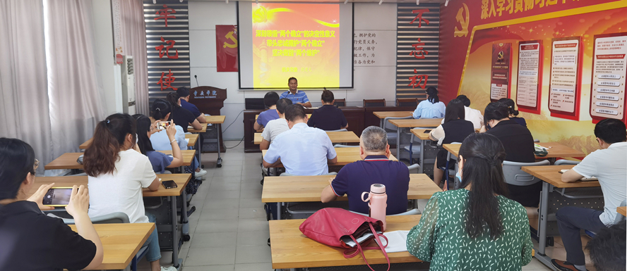 本网讯 5月18日,机关党委按照主题教育工作安排,组织开展“百名书记讲党课”专题活动,书记周建文以《深刻领悟“两个确立”的决定性意义,带头忠诚拥护“两个确立”,坚决做到“两个维护”》为题作学习报告。机关各支部宣传委员、党员代表参加。
