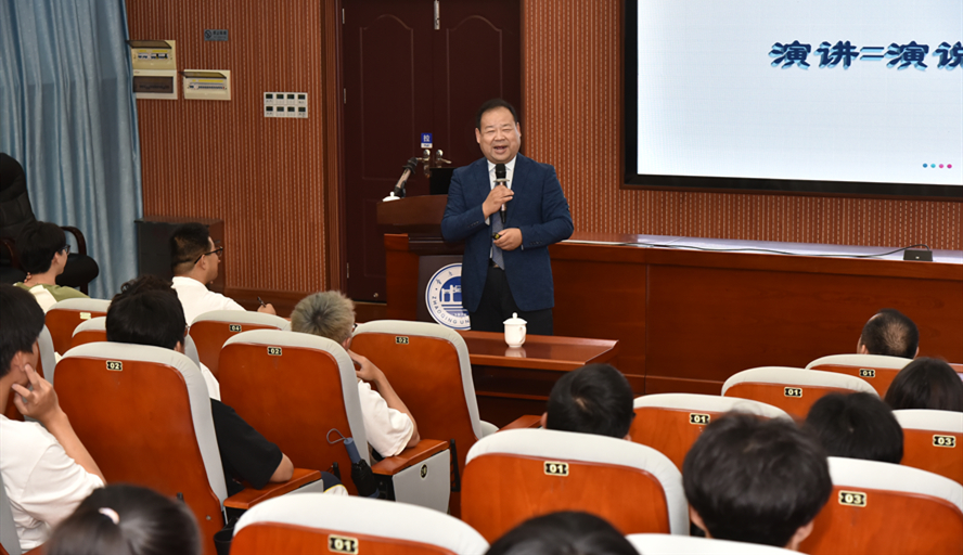 讲座中,孙朝阳对演讲和沟通艺术进行了深入浅出的探析,强调演讲是宣传鼓动的语言交际活动,评判其好坏的第一标准是道德。他重点讲解了综合运用语速、语调和语势等演讲要素的方式方法,并通过现场互动和即时点评,围绕演讲活动需要注意的问题对同学们进行了科学指导。整个讲座入情入理,妙趣横生,为同学们带来了一场语言艺术的盛宴。