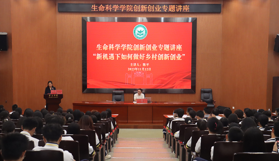 本网讯 11月12日,生命科学学院成功举办创新创业专题讲座,邀请广东创旅城乡产业规划与振兴研究院院长陈平主讲。生命科学学院副院长李赛男、党委副书记邱兴和、园林与风景园林系主任钟国庆、创新创业学院甘鸣老师等师生共计400余人参加讲座活动。