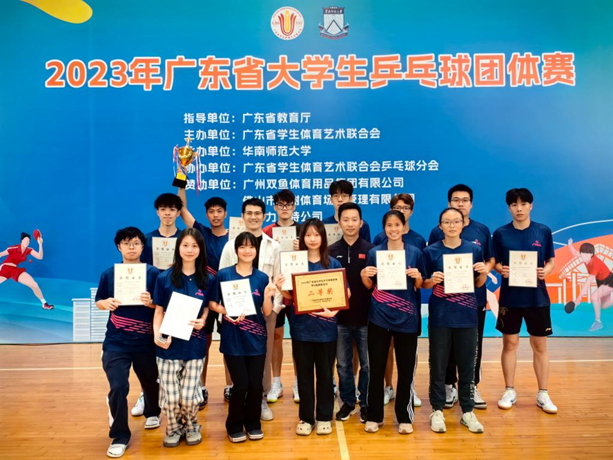 本网讯 11月24日至28日,由广东省教育厅指导、广东省学生体育艺术联合会主办的2023年广东省大学生乒乓球团体赛在华南师范大学如期举行。必赢242net官网乒乓球队共派出8名男运动员、6名女运动员分别参加甲、乙组别比赛。在体育与健康学院副院长杨丽华、教练杨博的带领下,每名球员都顽强拼搏,尽力发挥出最好水平。