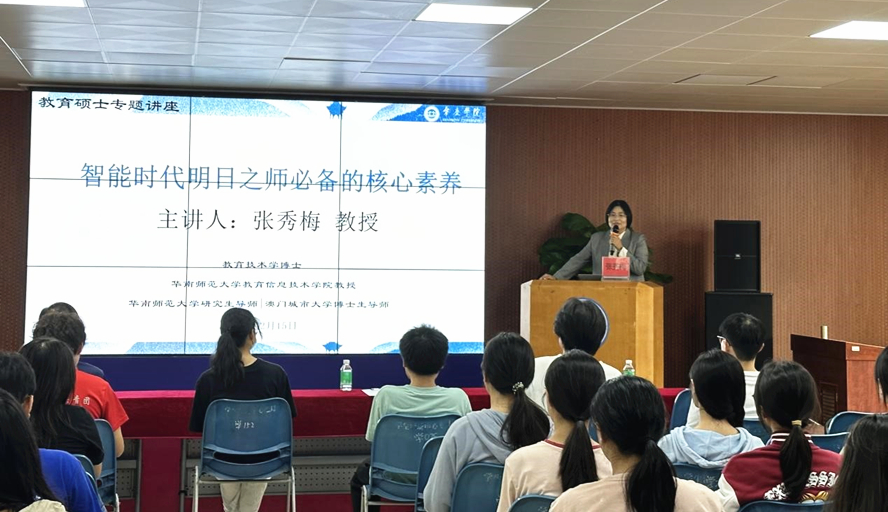 本网讯 12月15日,华南师范大学教育信息技术学院张秀梅教授应邀来到我校,为教育硕士研究生开展《智能时代明日之师必备的核心素养》专题讲座。