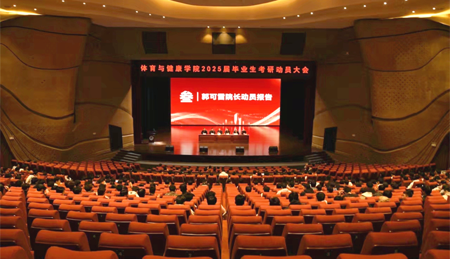 本网讯 3月6日晚,体育与健康学院在艺术中心剧场召开2025届毕业生考研动员大会,意在进一步激发在校生考研斗志,坚定求学信念。院长郭可雷作动员报告,党委书记梁艳红与全体班子成员出席动员大会,2021级(2025届)全体在校生500人参加。