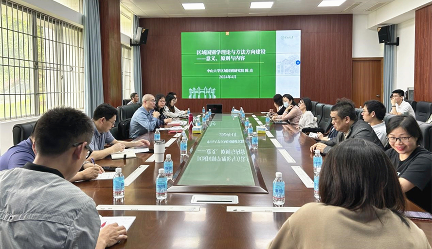 然后,陈杰教授开展了题为“区域国别学理论与方法方向建设--意义、原则与内容”的讲座。他阐述了区域国别学的五大研究内容:学科史、区域国别学理论体系研究、区域国别学方法体系研究、区域国别学的平台与工具体系构建研究和区域国别学学科构建与人才培养研究。之后,他与在场的教师就区域国别学实践类课程的设置、音乐与区域国别学的交叉融合、翻译学在区域国别学中的作用等话题进行了互动交流。