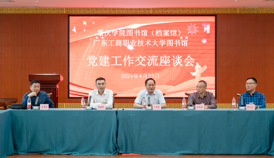 党建工作交流座谈会上,黄镜辉、班荣鼎就党建引领发展、党员队伍建设、党组织核心力量、深化人才培养和服务育人方面、我校图书馆业务工作和主要做法进行了深入交流,希望双方加强馆际交流,抓住肇庆高鼎端科教走廊的发展契机,弘扬红船精神,树立湾区馆际深度交流与合作的典范。卢景值表达了共同推进两馆及两校高质量发展的愿景。
