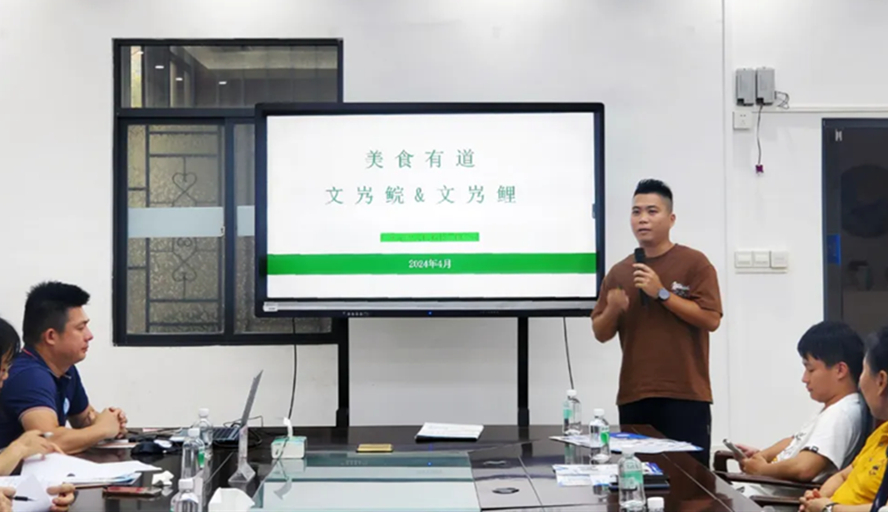 广东冠聪文化科技有限公司以聚焦农业养殖、科技研发、销售网络三大产业结构,公司创始人作为传承人返乡创业,通过“公司+基地+农户”的合作模式,统一供应鱼苗、统一发放投喂品、统一技术指导、统一保底包销,鱼干品种的研发及加工,已获得实用新型专利1项、注册商标4项、国家地理标志1项,3A信用等级等资质荣誉,致力于推动文㞧鲤、文㞧鲩养殖产业向大湾区乃至全国辐射。