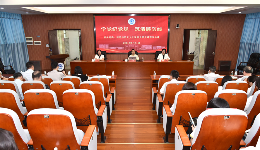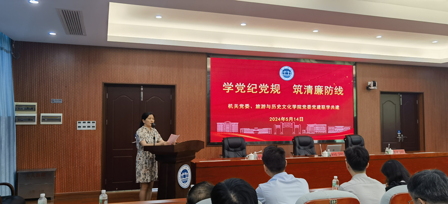 本网讯 5月14日,机关党委、旅游学院党委举行“学党纪党规 筑清廉防线”党建联学共建活动,特邀我校退休教师、党史专家杨迎春教授作题为《加强党的纪律建设 推进党的自我革命》的辅导讲座,切实提升党员干部、党员教师对党纪党规的认识理解。
