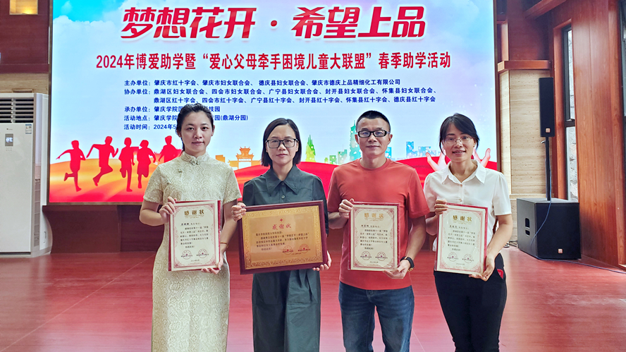 本网讯 5月19日,我校成功举办第十一届“梦想花开·希望上品” 2024年博爱助学暨“爱心父母牵手困境儿童大联盟”春季助学活动。此项活动由市红十字会、市妇女联合会、德庆县妇女联合会、德庆上品精细化工有限公司主办,我校国家大学科技园承办。