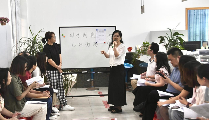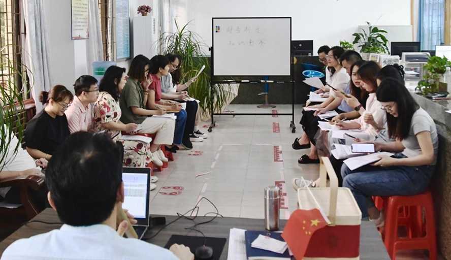 财务部全体成员积极参与,参赛人员共分为六组,每组由出题者和答题者组成。问答环节中,每组出题者轮流展示三道财政知识题目,答题选手需在规定的4分钟内作答,随后由出题者公布正确答案并详细解答相关知识,工作人员根据选手的表现评分。