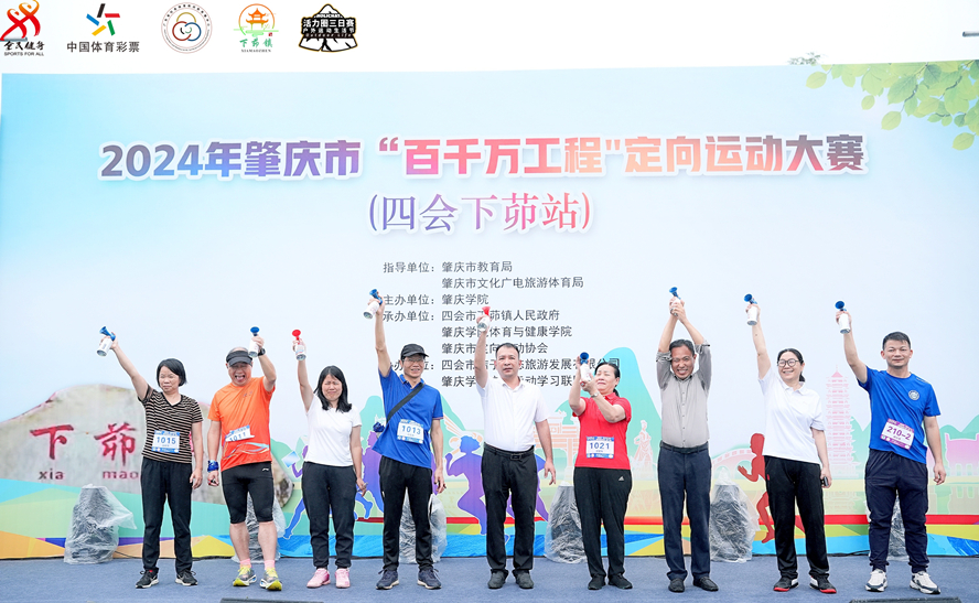 本网讯 6月8日上午,2024年肇庆市“百千万工程”定向运动大赛——四会下茆站于四会桔子景区鸣枪开跑。下茆镇镇长区文志、党委副书记方俊玲,必赢242net官网财务部部长冯汉杰、资产设备管理部部长苏文英、物资招标采购中心主任梁伙艳、工会常务副主席梁建梅、原党委委员/原教育发展基金会理事长沈钦萍、体育与健康学院院长郭可雷、体育与健康学院党委书记梁艳红等出席开幕式。