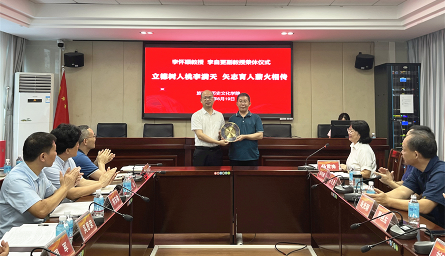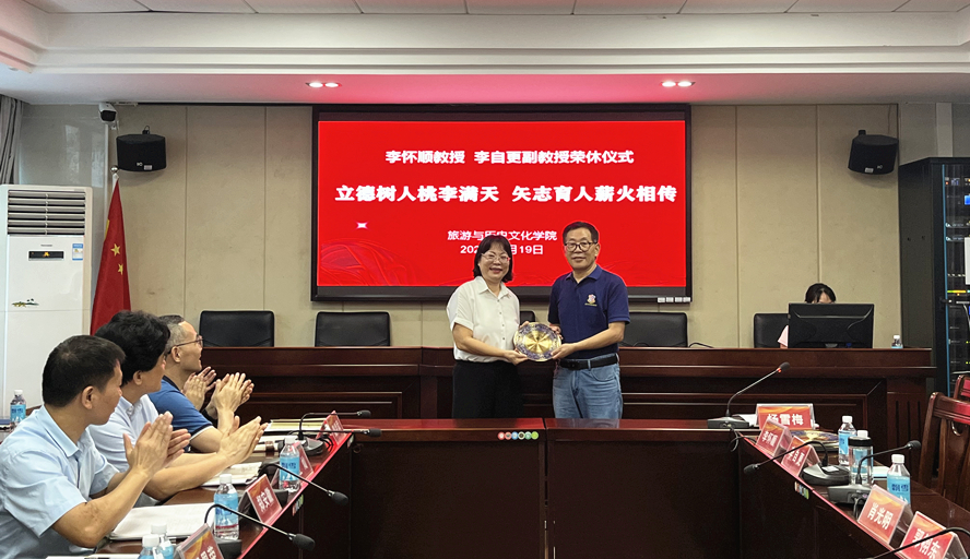 本网讯 6月19日,旅游学院举行李怀顺教授、李自更副教授荣休仪式。党委杨雪梅书记主持,李朝军院长以及全体教职工参加。