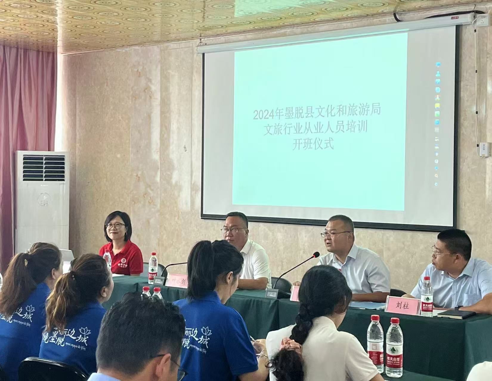 报告会由墨脱县文化和旅游局李振局长主持,县委常务副书记、政府常务副县长叶水剑出席开班仪式并作动员讲话,墨脱县文旅行业相关的酒店、旅行社、餐饮、旅游公司、莲花阁博物馆等60余人共同聆听了黎教授的精彩报告。