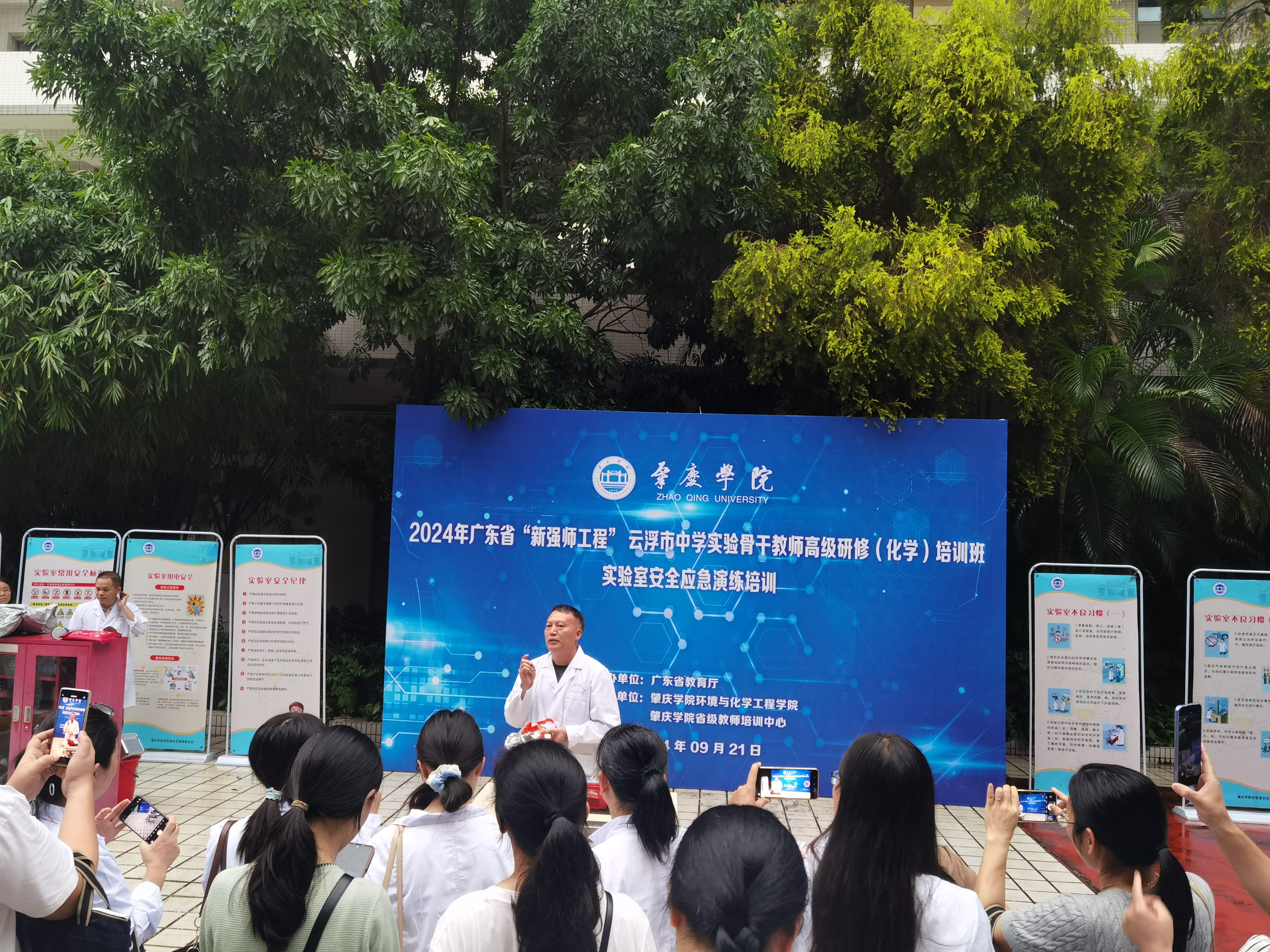 本网讯 9月21日,2024年广东省“新强师工程”云浮市中学实验骨干教师高级研修(化学)培训班实验室安全应急演练在学校顺利举办。培训过程中,来自环境与化学工程学院实验中心的老师们为参训教师详细讲解了实验室安全规范、危化品管理以及应急处置流程等关键内容。通过模拟割伤、烫伤、火灾、危化品泄漏等紧急情况,教师们亲身体验了应急处理的全过程,包括正确使用个人防护装备、迅速隔离泄漏源以及有效采取补救措施等。