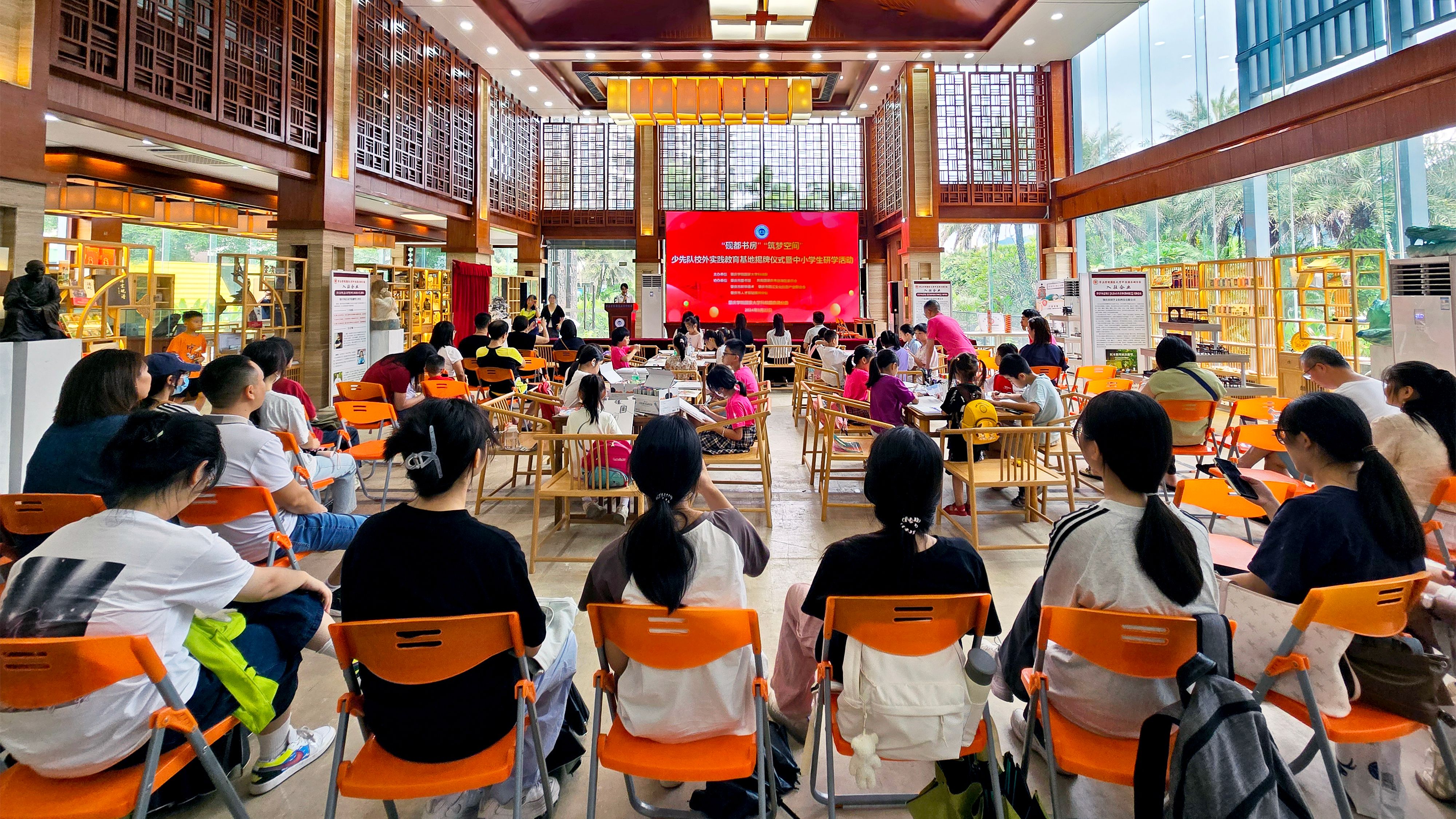 本网讯 9月22日,“砚都书房”“筑梦空间”“少先队校外实践教育基地”揭牌仪式暨中小学生研学活动在我校大学科技园鼎湖分园举行。科技园管委办主任肖俊霞、肇庆市图书馆副馆长谢沚蓝、共青团肇庆市鼎湖区委员会书记李巧婷、鼎湖区教育局副局长汪俊杰、中小学学生与家长以及青年代表等共计80余人参加活动。