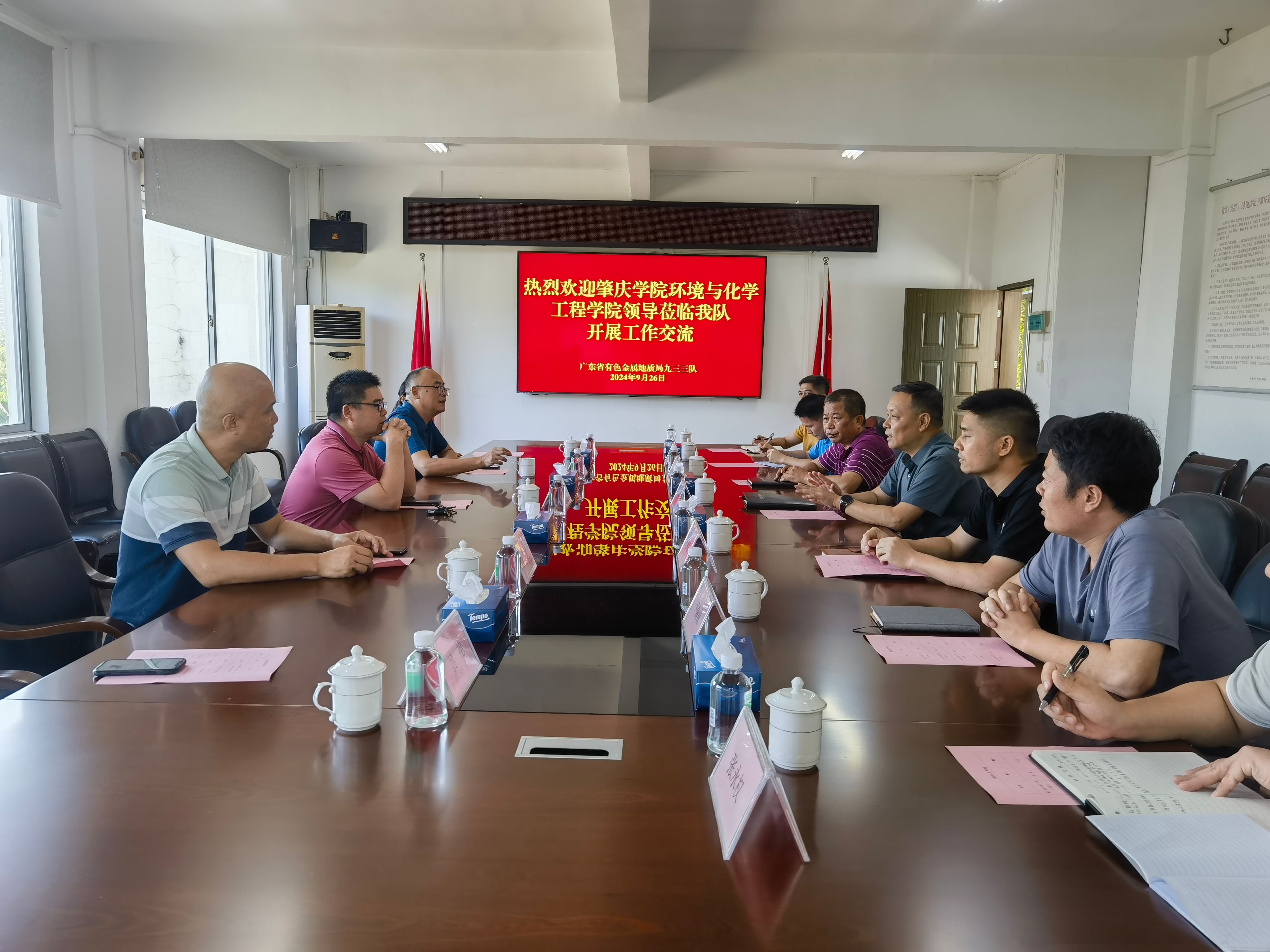 本网讯 9月26日下午,环化学院院长李湘一行5人前往广东省有色金属地质局九三三队开展工作交流。九三三队负责全面工作的副队长李金刚主持交流座谈,该队其他职能科室负责人参加了座谈会。
